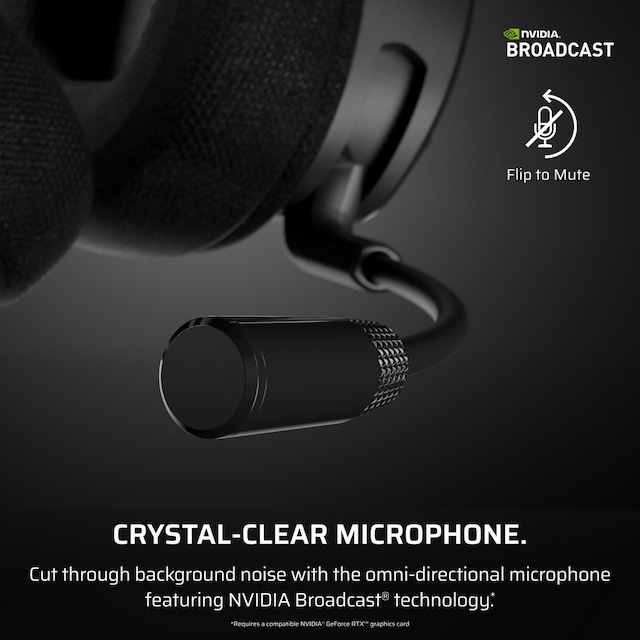 Den rundstrålende mikrofon med NVIDIA Broadcast®-teknologi** skærer gennem baggrundsstøj, så dit hold hører dig tydeligt.