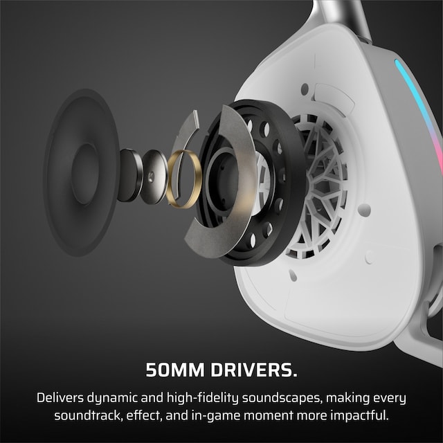 De specialtilpassede 50 mm drivere leverer dynamiske og naturtro lydbilleder, som løfter alle soundtracks, effekter og spiløjeblikke til næste niveau.
