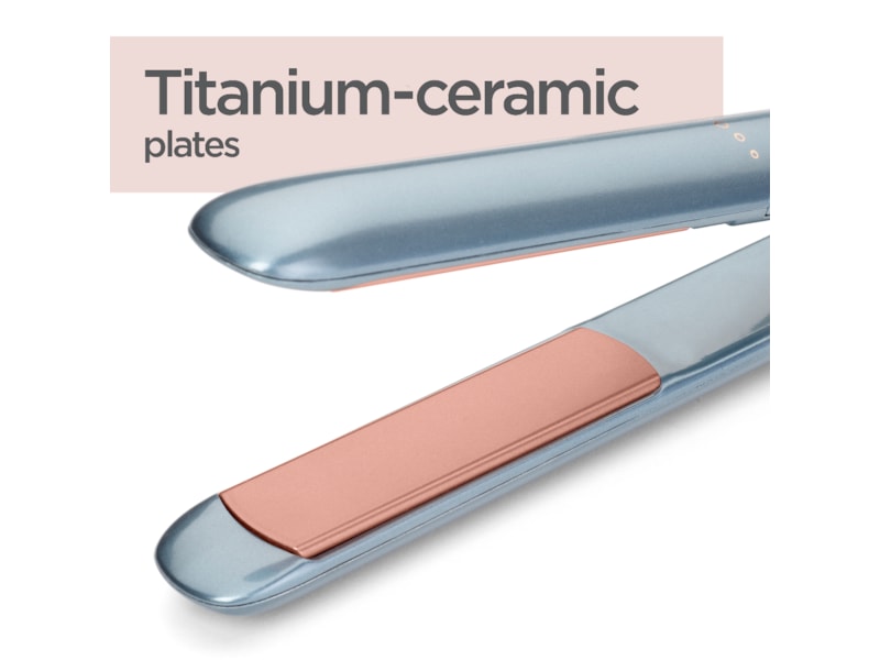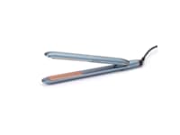 Vores smukke Denim Luxe Straightener med ultraglatte titanium-keramiske plader gør håret glat og glansfuldt.
