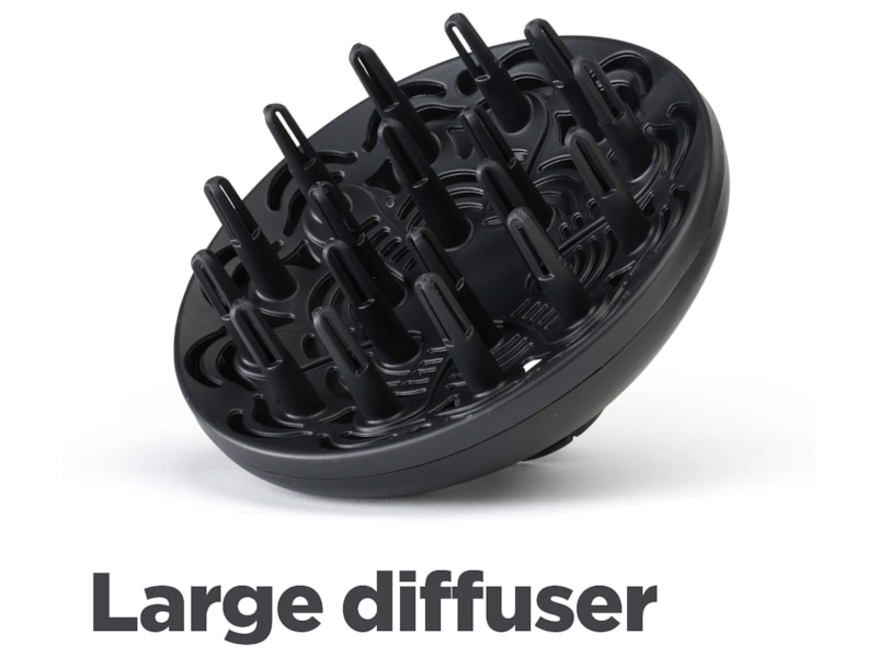 Inkluderer en stor diffuser, der fremhæver naturlige krøller, og et koncentratormundstykke, der giver et glat look.