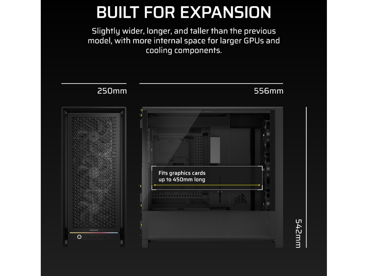 - Lidt Større – GPU'er bliver større og varmere, hvilket er grunden til, at Frame 5000D er designet lidt længere og bredere end de fleste andre mid-tower cases.