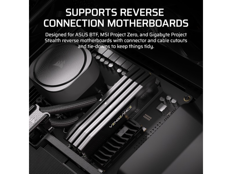 - Understøtter Omvendte Forbindelses Motherboards – ASUS BTF, MSI Project Zero og Gigabyte Project Stealth valideret med masser af tilslutninger og kabel udskæringer og bindes for at holde tingene ryddelige selv, hvor du ikke kan se dem.