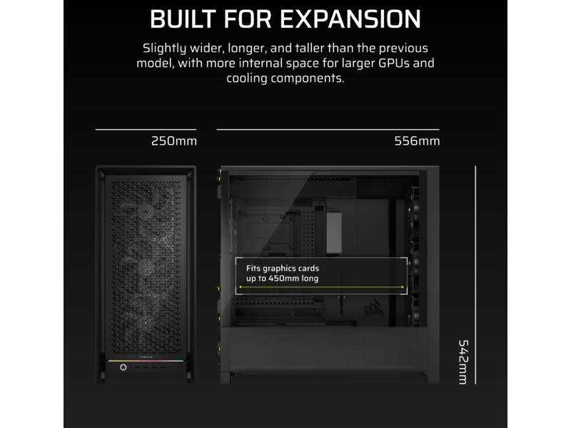 - Bygget til iCUE Link – Designet fra bunden til nem iCUE LINK integration, har FRAME 5000D kabelkroge, øgede bindepunkter og en dedikeret monteringslomme til en iCUE LINK System Hub (sælges separat).