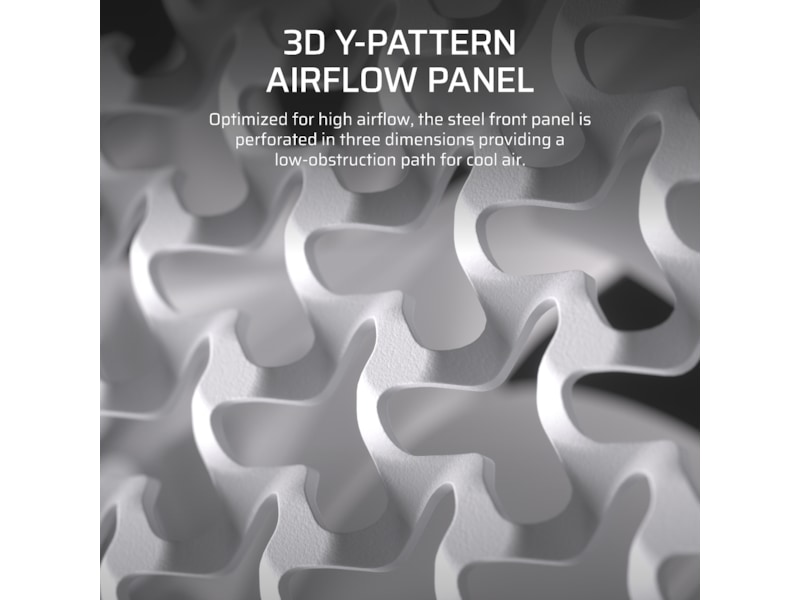 - 3D Y-Mønster Luftstrøm Panel – Optimeret til høj luftstrøm og minimal begrænsning, stålfrontpanelet er perforeret i tre dimensioner med et Y-mønster, der giver en lavobstruktions vej for kølig luft.