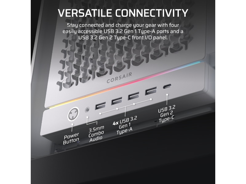 - Alsidig Forbindelse – FRAME 5000D tilbyder fire USB 3.2 Gen 1 Type-A porte og et USB 3.2 Gen 2 Type-C front I/O panel. I/O portene er også blevet flyttet til bunden af kabinettet for at gøre det nemt for folk med deres PC på skrivebordet at tilslutte enheder.