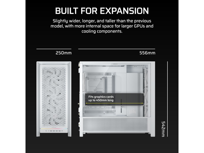 - Lidt Større – GPU'er bliver større og varmere, hvilket er grunden til, at Frame 5000D er designet lidt længere og bredere end de fleste andre mid-tower cases.