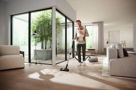 Vores støvsugere med Silence System Plus giver dig førsteklasses rengøringsresultater med behageligt lavt støjniveau. Takket være indsatsen fra særligt effektive motorer og optimeret isolering opnås et støjniveau på kun 66 dB. Nyd en stressfri rengøring med lavt støjniveau.