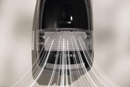 Særligt lavt lydniveau: Miele Silence AirClean-filteret reducerer luft- og motorstøj samtidig med at ren luft sikres.