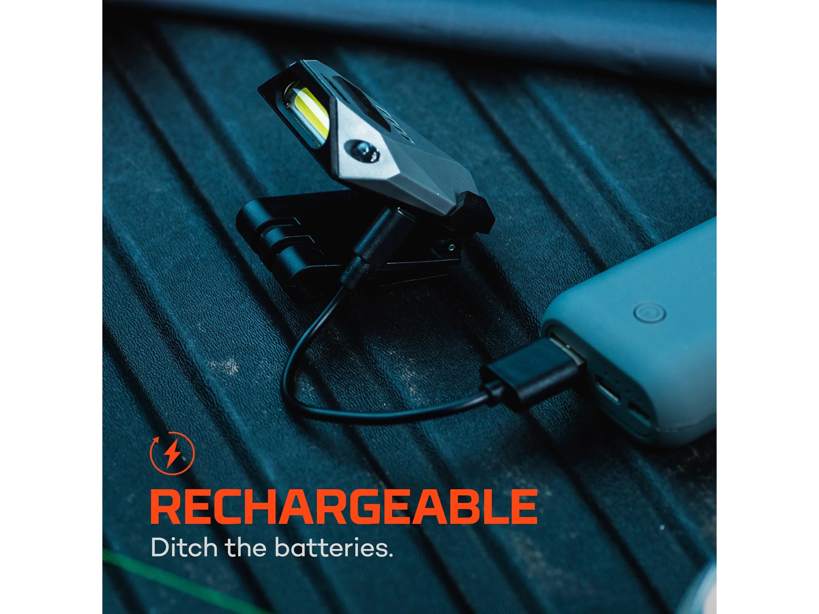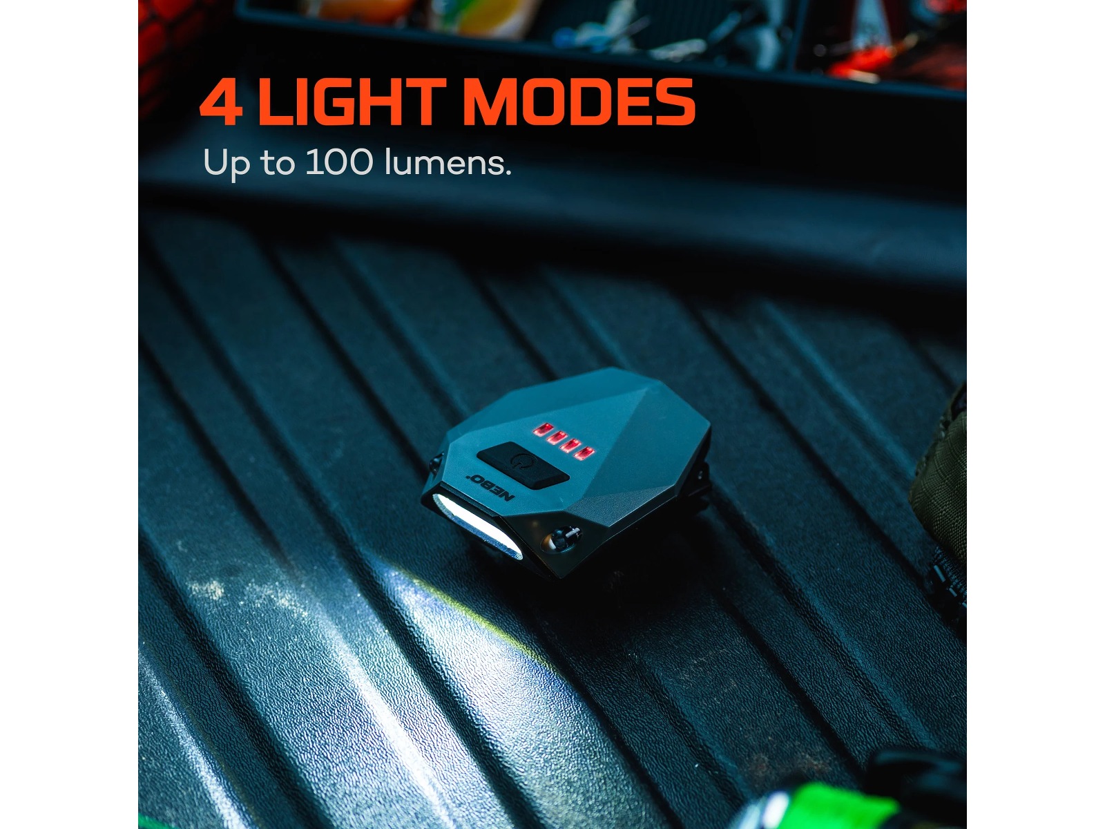Einstein™ Cap Light fra NEBO er en 100 lumen genopladelig lampelygte med 4 lysindstillinger for perfekt belysningskontrol og niveau i henhold til dine behov. Det medfølgende batteri giver op til 18 timers drift mellem opladninger.