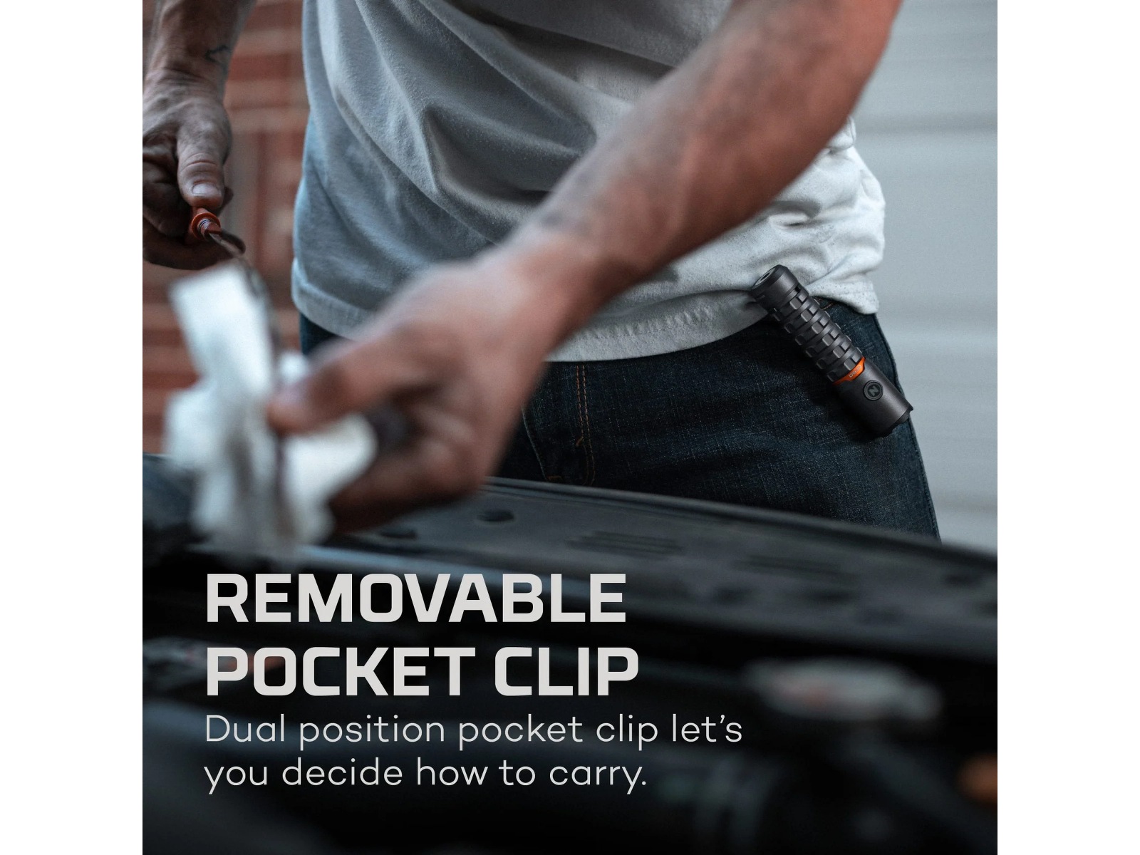 - Aftagelig stålbælte/lommeklip
