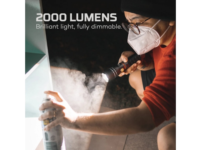 Genopladelig, vandtæt (IPX7) og ekstremt alsidig, SLYDE KING 2K har en 2.000 lumens lommelygte med 4x zoom og en 500 lumen C•O•B arbejdslampe. Hver lysmode er dæmpbar med programmerbar hukommelse. 2K har også et ergonomisk gummieret greb og en kraftig magnetisk base.