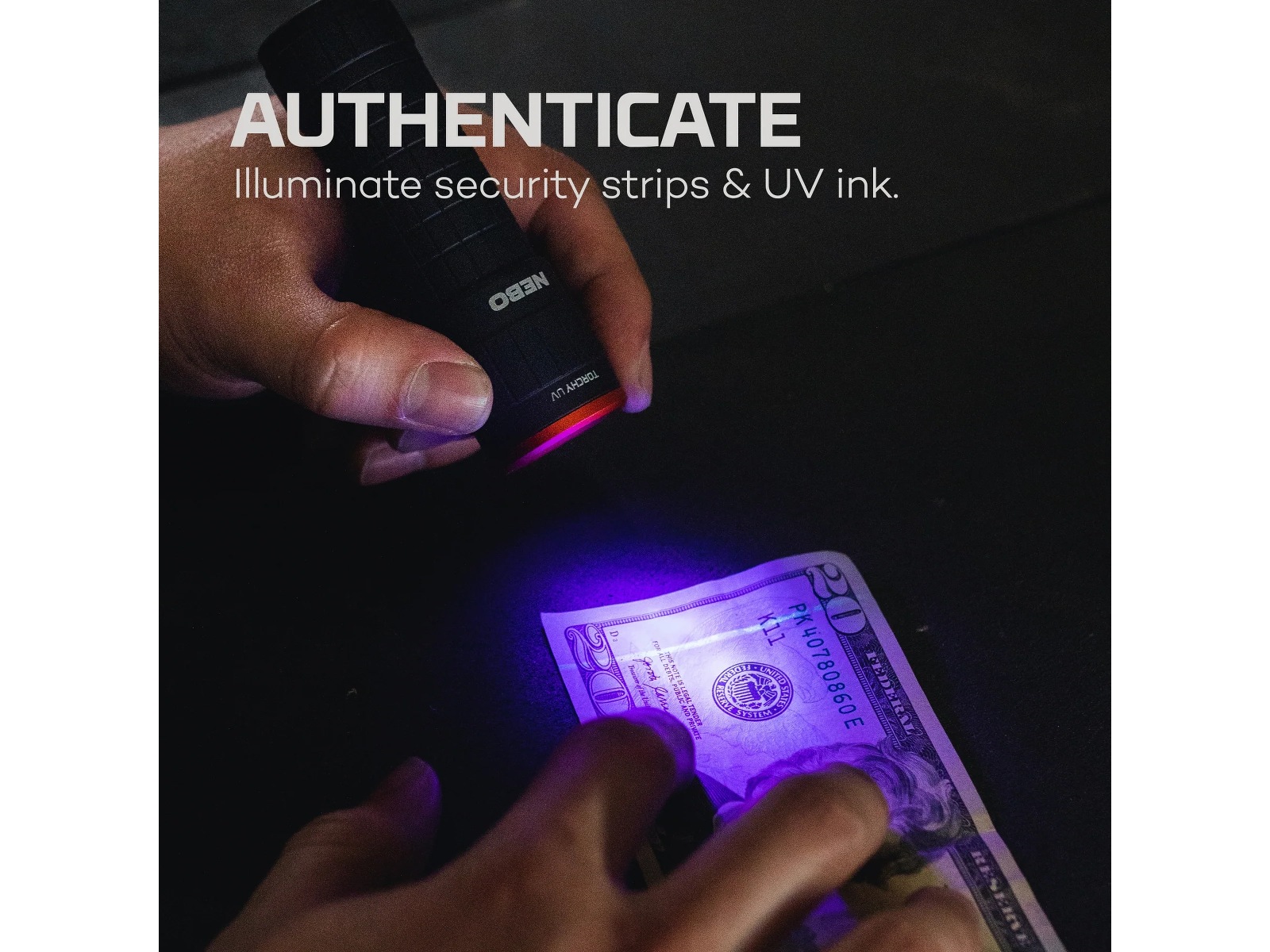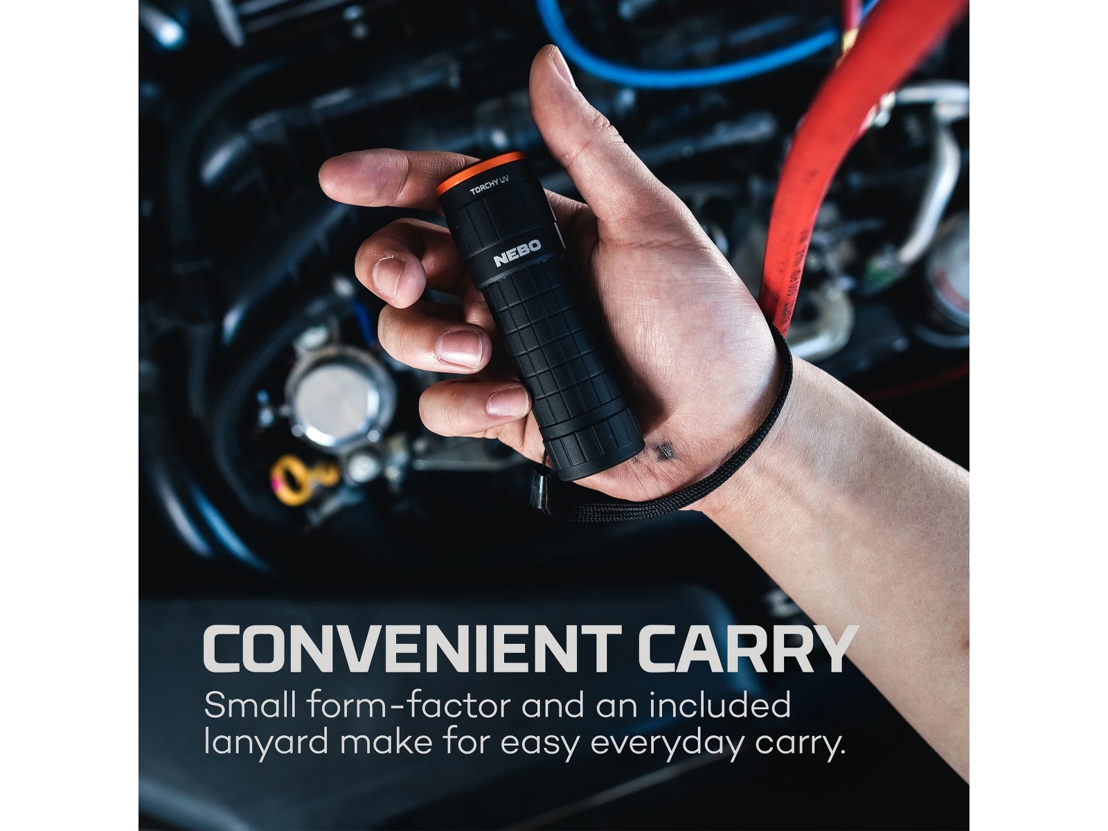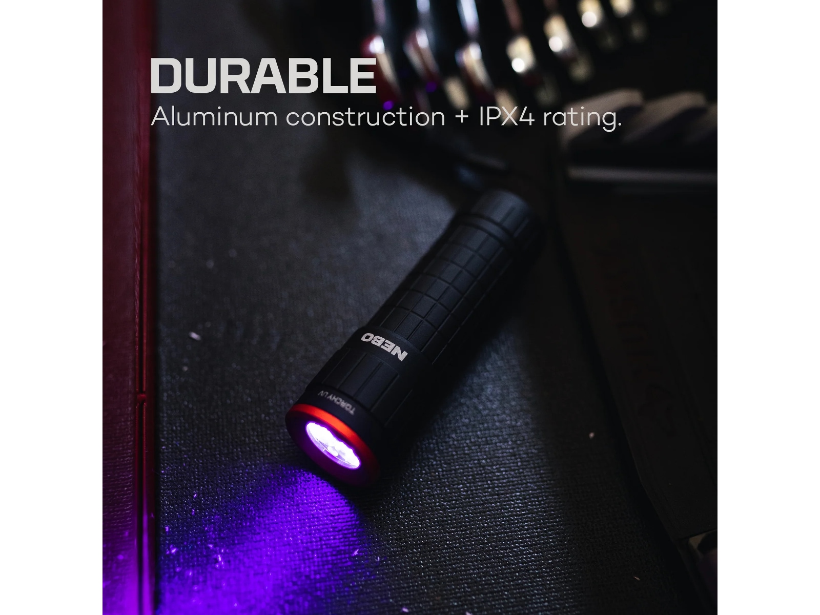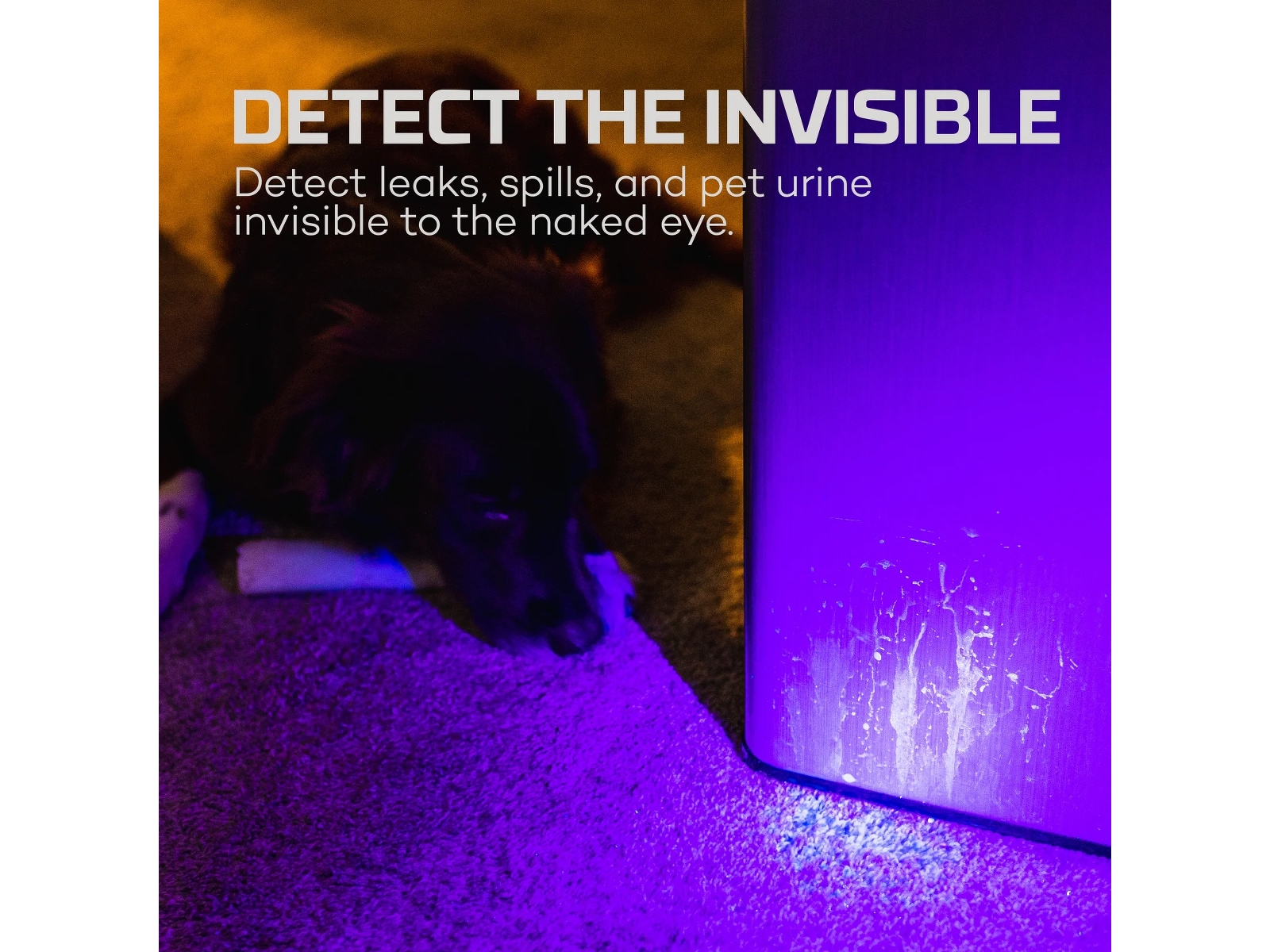 Se det usynlige med Torchy UV og Black Light. Designet med Dual UVA (Ultraviolet A) teknologi for bedre detektion, inspektion og autentificering i både bolig- og erhvervsapplikationer. De bredspektrale bølgelængder giver en blandet belysning og fluorescens, der er ideel til opgaver på kort afstand, såsom detektion af dyreurin, inspektion af bil-lækager med UV-farvestoffer, skadedyrsdetektion såsom skorpioner, rengøringsinspektioner og autentificering af valuta. Kompakt og lommevenlig, denne lampe er konstrueret med et holdbart aluminiumhus, der er slagfast og vandafvisende. Batteridrevet med tre AAA-batterier (inkluderet).