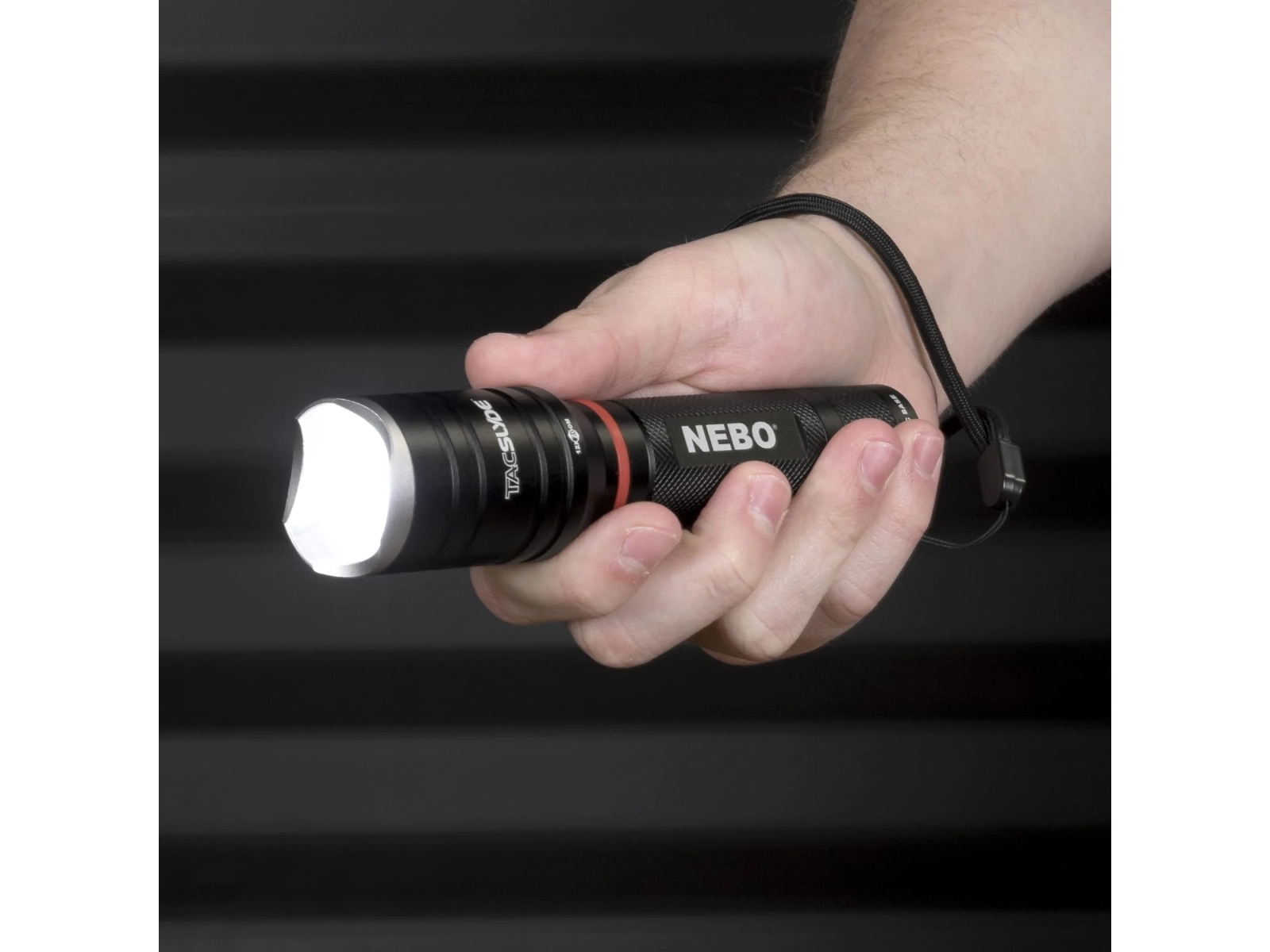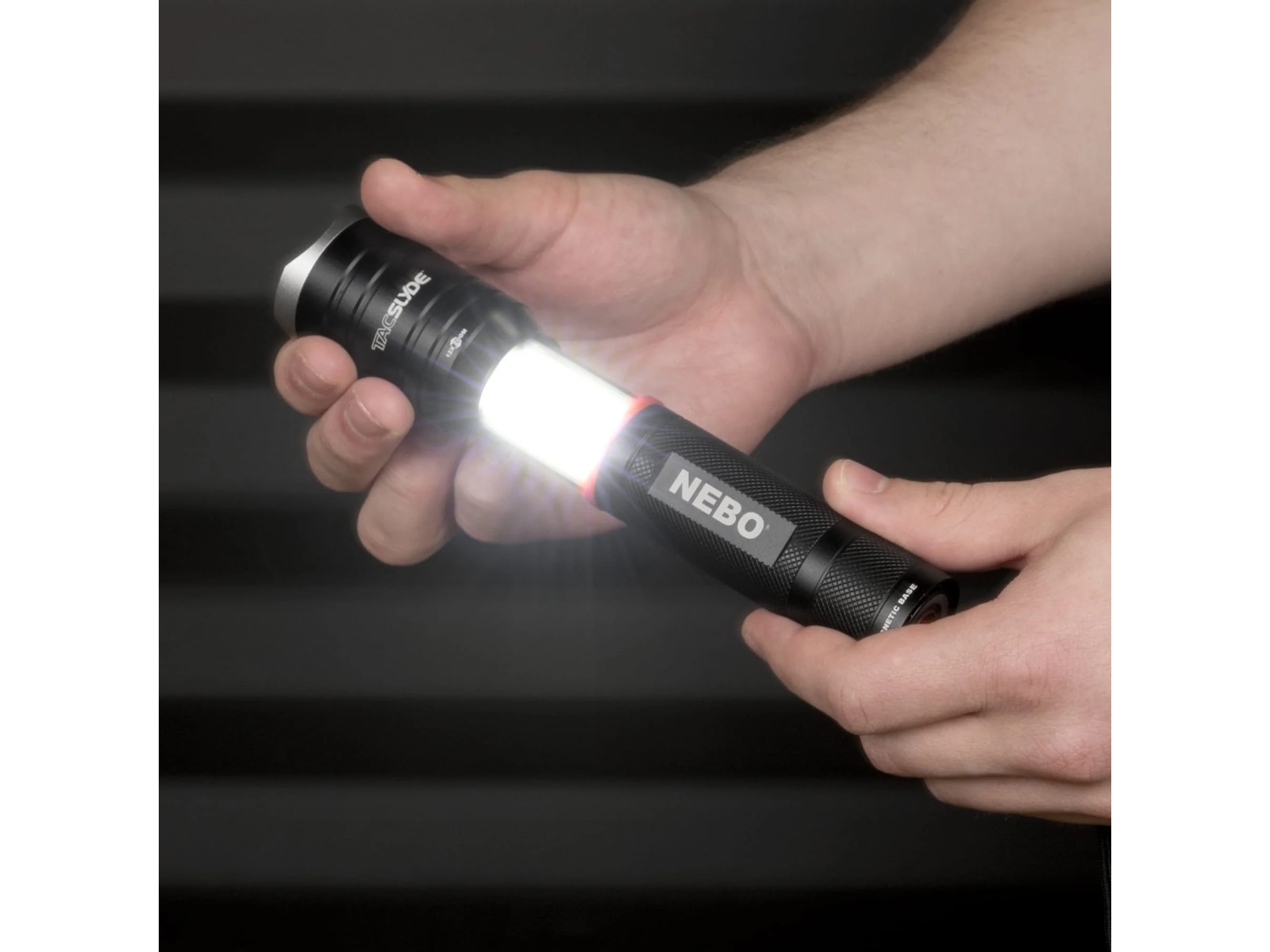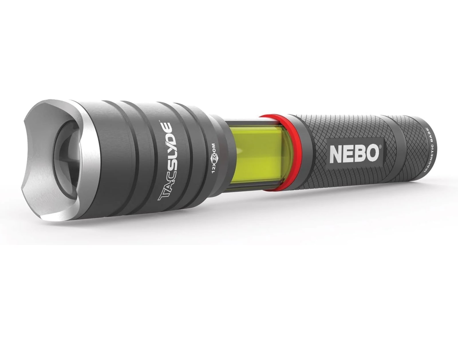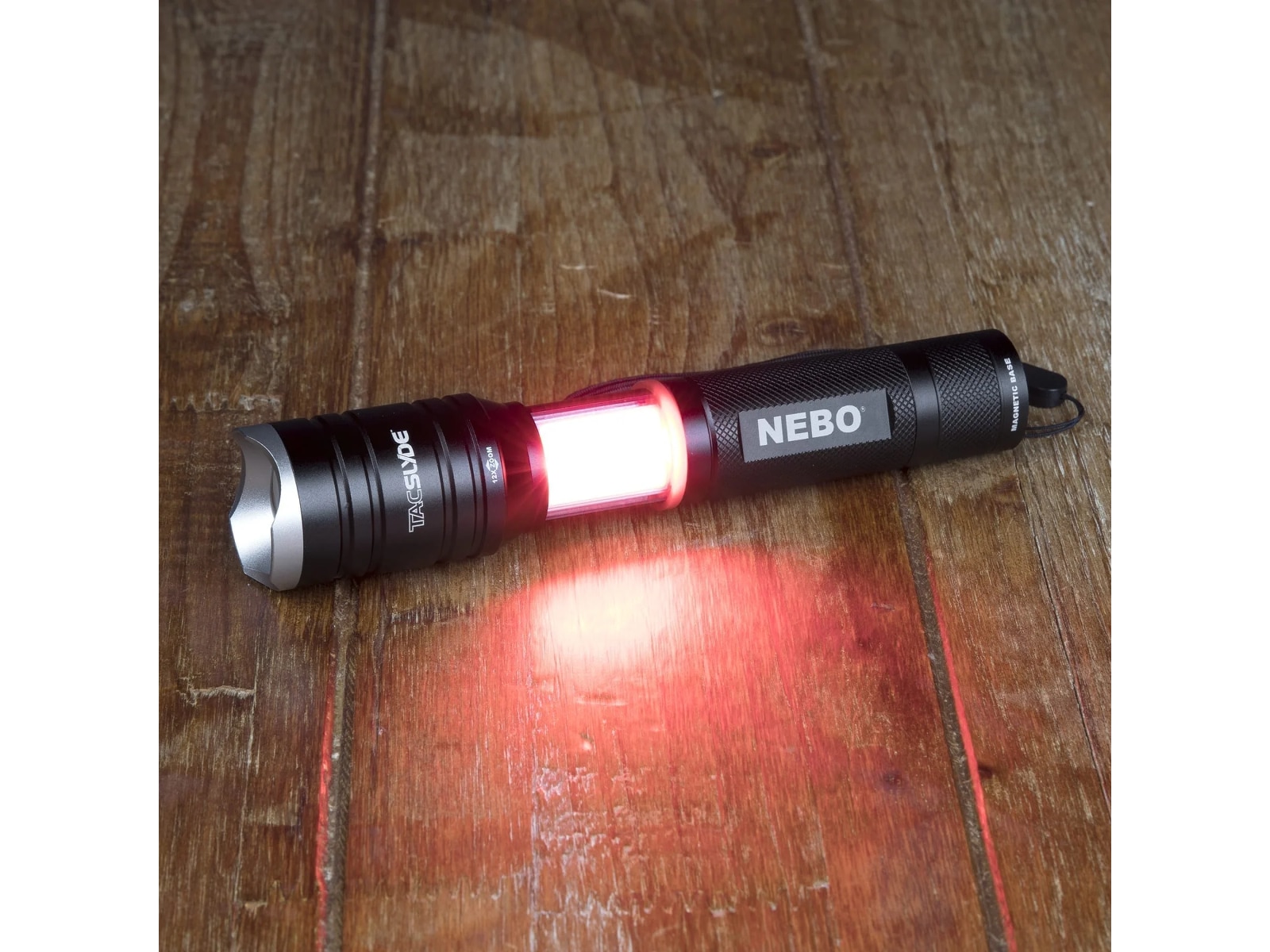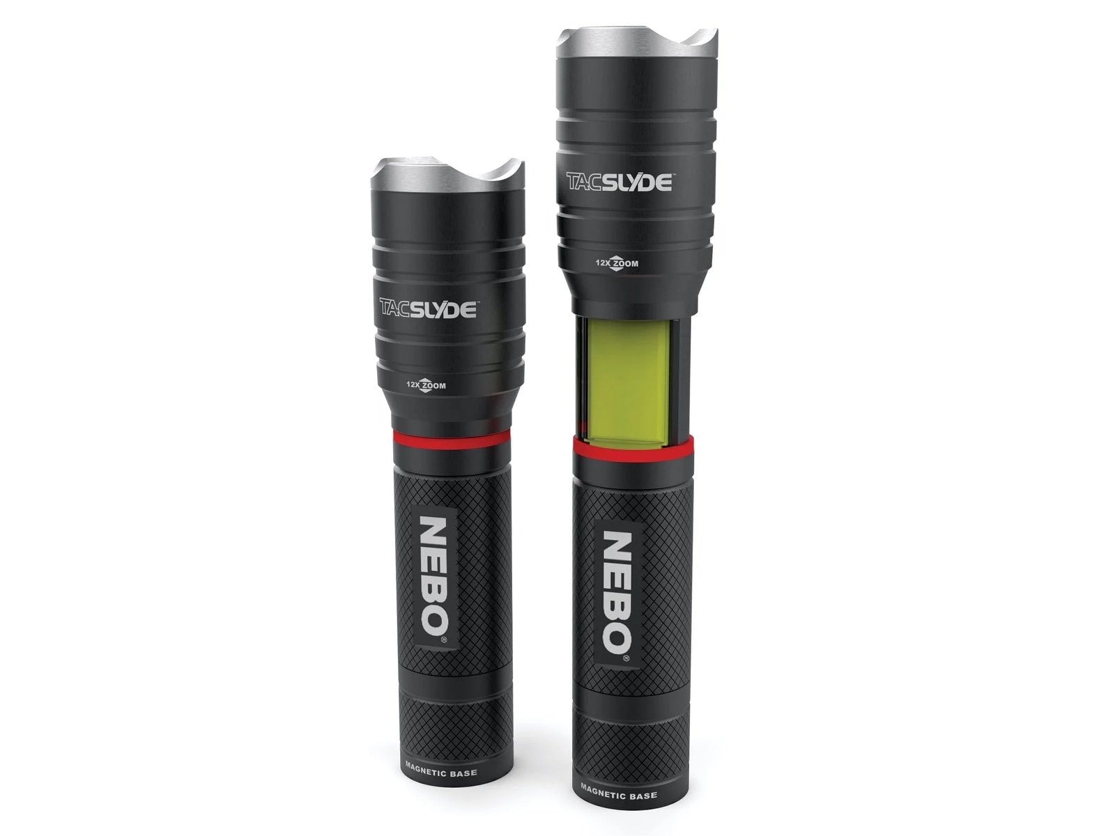 Tac Slyde™ har en lommelygte med 300 lumen, 12x justerbar zoom og 5 lys tilstande.