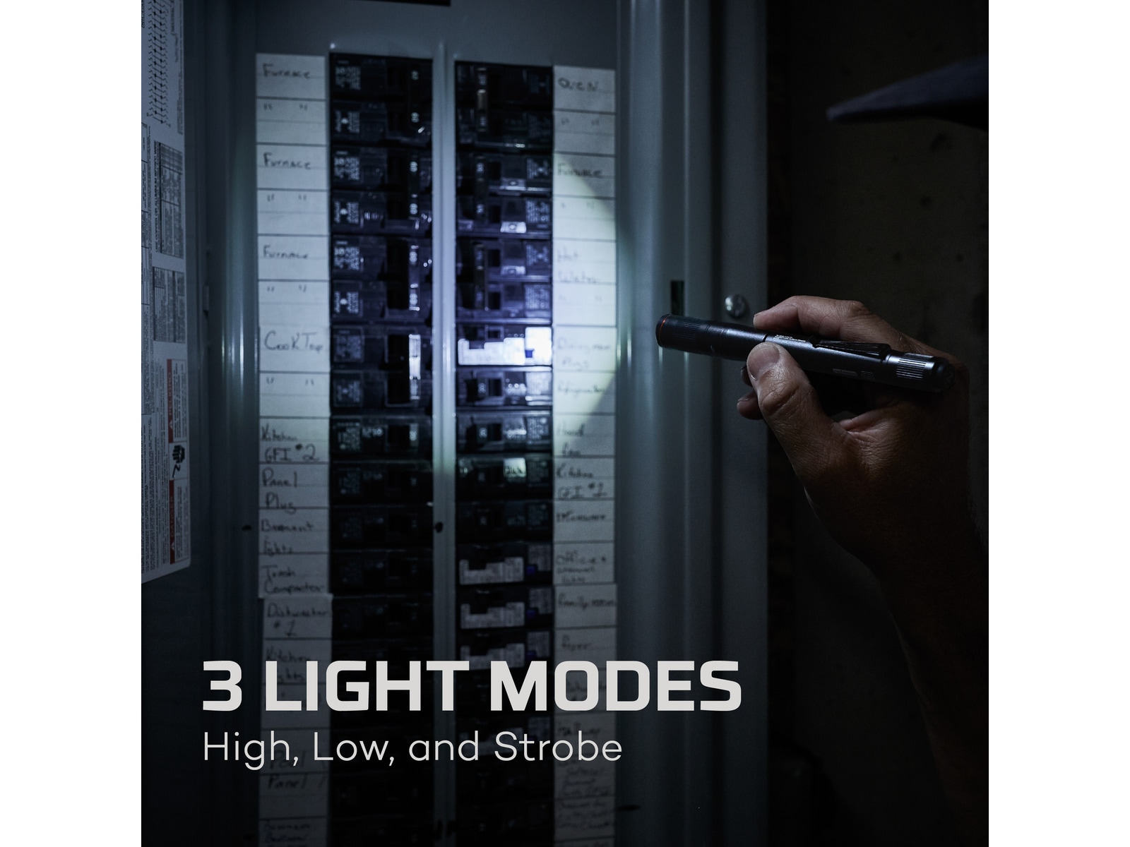 COLUMBO™ 150 penlighten har en 150 lumen LED, 3 lystilstande, 4x justerbar zoom, Easy Touch Technology, stærk stålclips og et vandtæt (IP67) anodiseret fly-grade aluminiumskabinet. De medfølgende AAA-alkaliske batterier muliggør op til 6 timers drift.