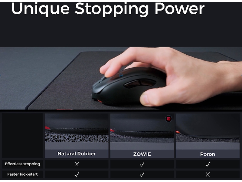 ZOWIE's nye skridsikre base forbedrer stabiliteten og reducerer den glidning, som musemåtten oplever under intens gameplay.