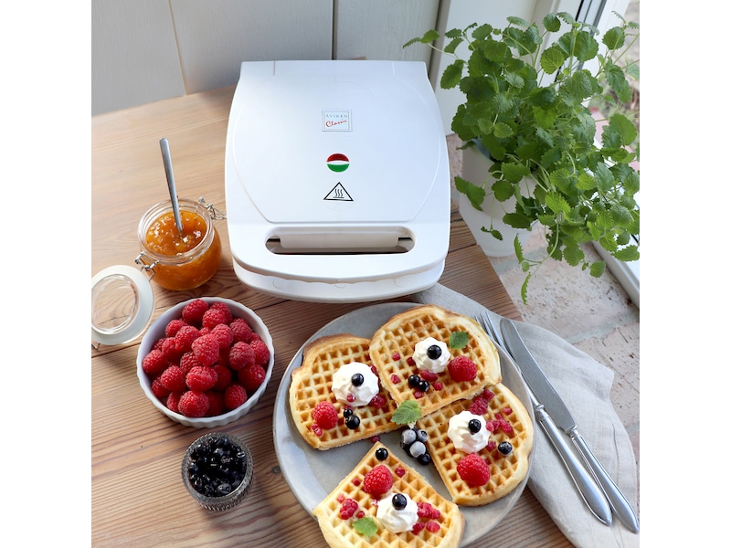 - Enkelt vaffeljern, der bager 4 hjerter ad gangen.