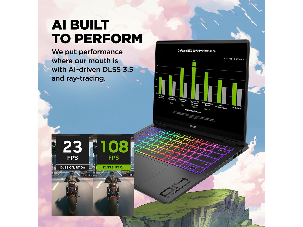 Letvægtsdesign, avanceret køling, batteri på 71 Wh, hurtig USB-C™-opladning til at game og skabe på farten.