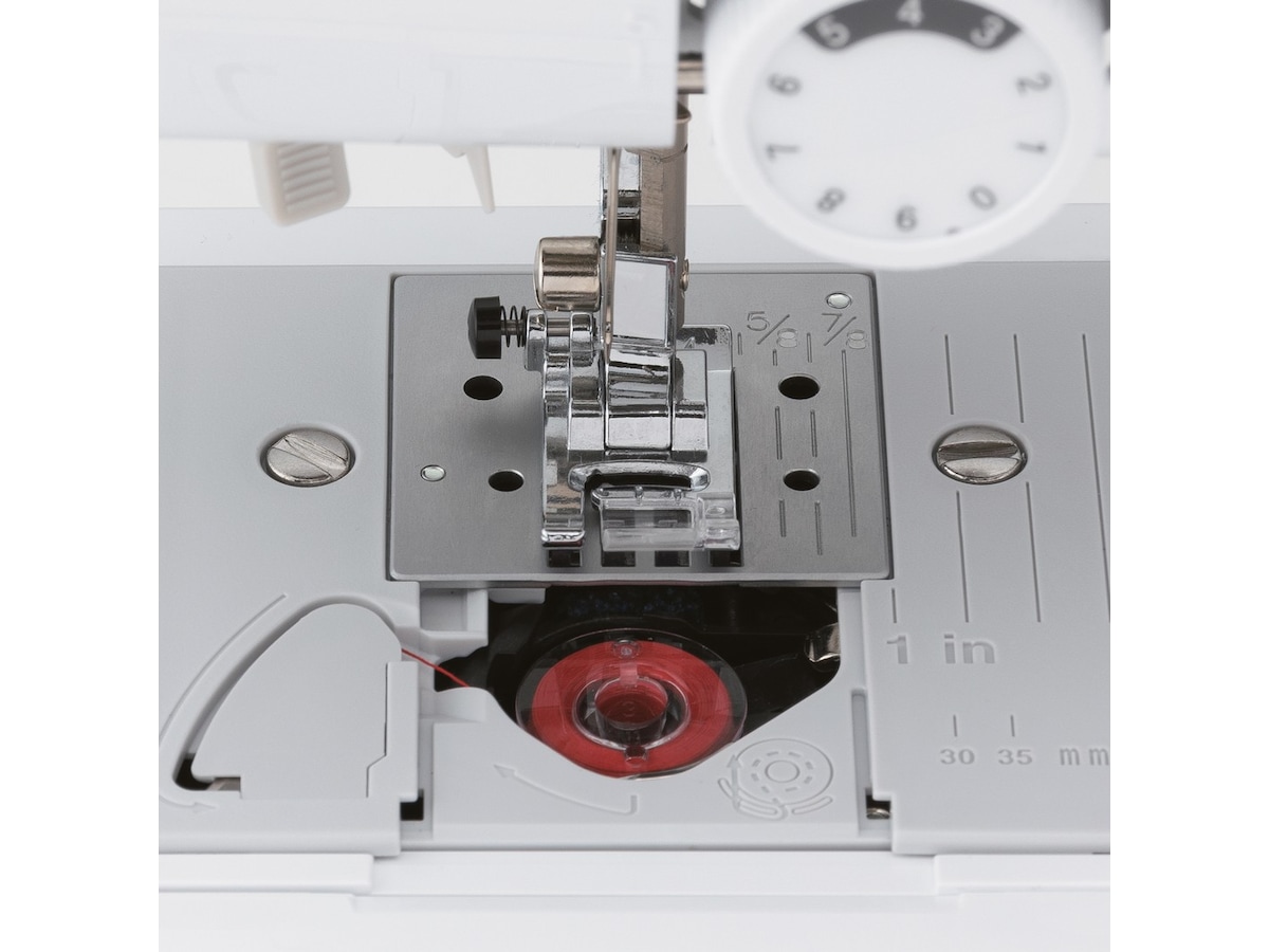Alle Brothers symaskiner kommer med det smarte drop-in spolesystem, som ikke bare gør det nemt at skifte spoler, men som ligeledes kører gnidningsfrit og lydløst (selv ved høj hastighed). Du lægger ganske enkelt bare spolen vandret ned i maskinen, hvilket gør det super enkelt at tråde maskinen. Med det gennemsigtige låg, så er du sikret at det altid er den rigtige farve tråd som ligger i maskinen.