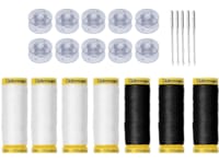 Højkvalitets sytråd fra Gütermann. Indeholder 4 x ruller hvid og 3 x sort tråd. Alle ruller i 100m. Garanteret knudefri, 100% polyester og fremstillet i Tyskland. Gütermann sytråd er den bedste til alle typer stof og sømme. Kan bruges på symaskinen eller til håndsyning. Vask ved max 95°C.
