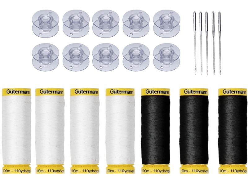 Perfekt til begynderen, der ønsker at starte med at sy. Kassen indeholder nåle, tråd og spoler. Alle kvalitets tilbehør fra Organ, Gütermann og Brother.