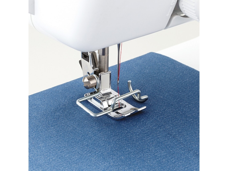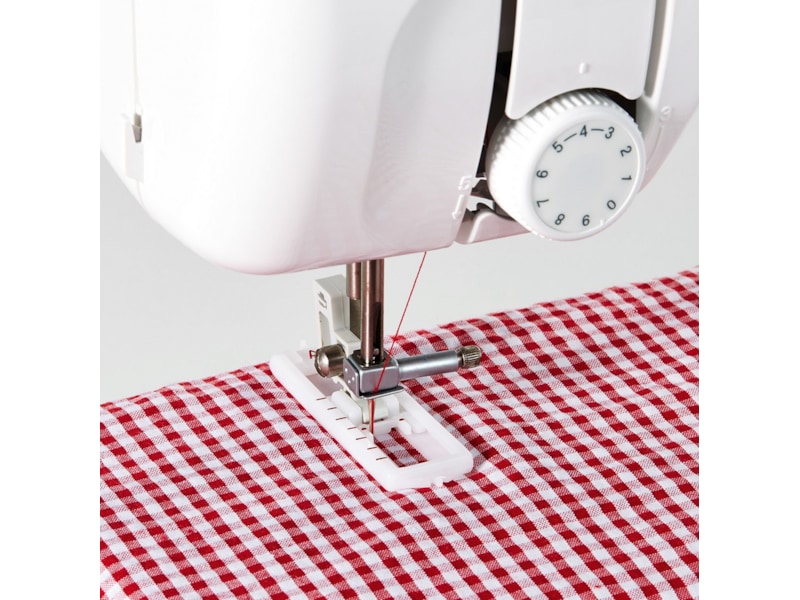Brother KE14s er nem at anvende og kommer med en praktisk fingerbeskytter. Dette gør at du trygt og roligt kan overlade syningen til de unge i familien, og at du som nybegynder dermed ikke skal frygte at få fingeren i klemme under nålen.