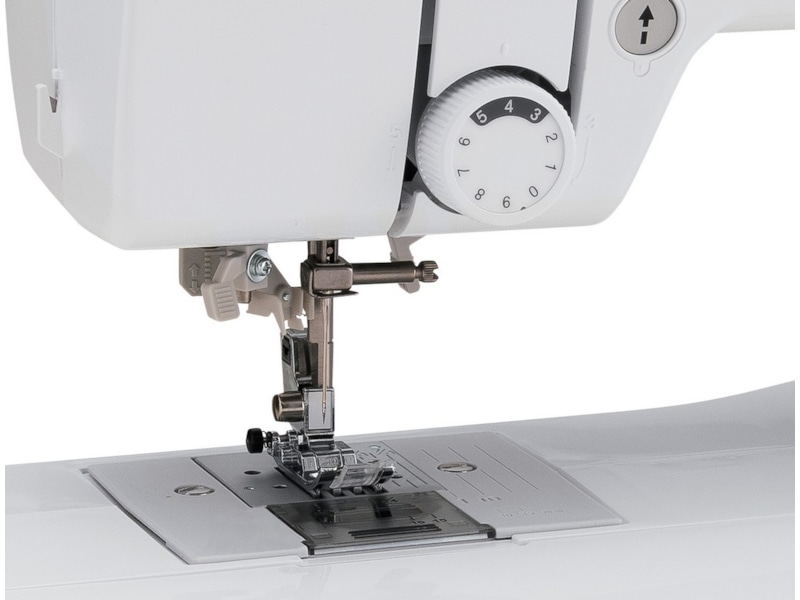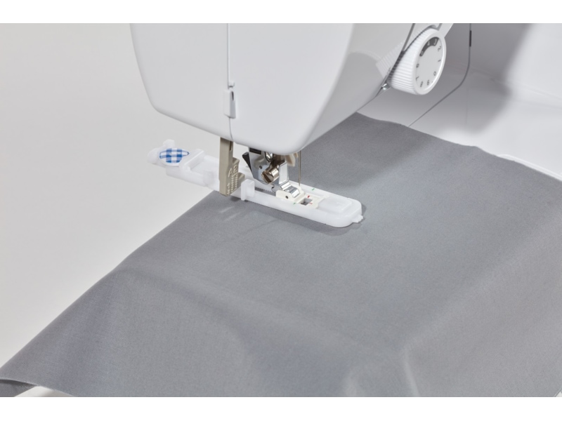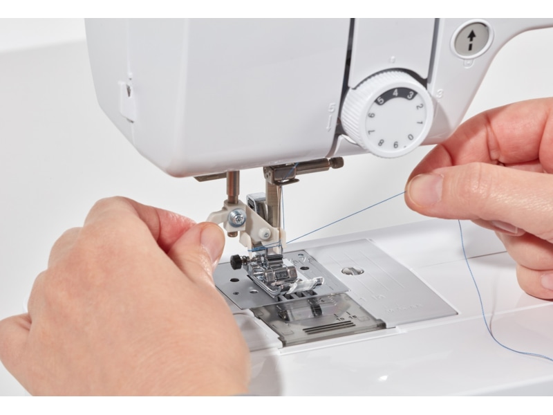 Du kan selv vælge, om nålen skal stoppe oppe eller nede i stoffet, hver gang du slipper foden fra pedalen - en feature, der giver mere kontrol og flow i arbejdet. Derudover har maskinen start/stop knap som et alternativ til fodpedalen.