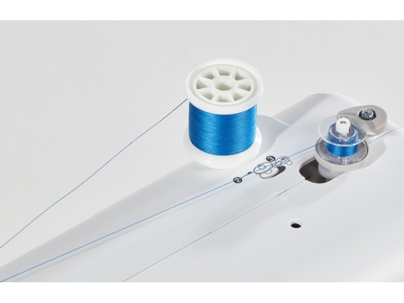 Alle Brothers symaskiner kommer med det smarte drop-in spolesystem, som ikke bare gør det nemt at skifte spoler, men som ligeledes kører gnidningsfrit og lydløst (selv ved høj hastighed). Du lægger ganske enkelt bare spolen vandret ned i maskinen, hvilket gør det super enkelt at tråde maskinen. Med det gennemsigtige låg, så er du sikret at det altid er den rigtige farve tråd som ligger i maskinen.