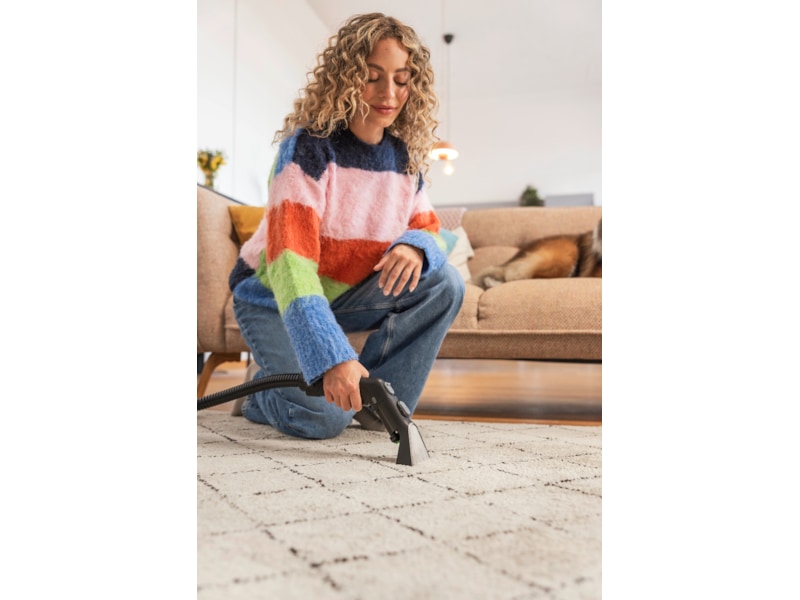Dybrensning helt ned i fibrene og kompakt design: SE 3 Compact Home Floor er en kraftfuld og energieffektiv løsning til rengøring af tekstile overflader. Den kompakte udformning gør den nem at opbevare, så den altid er hurtigt klar til brug, når grundig og praktisk dybrensning er nødvendig. Snavs fjernes hurtigt og effektivt fra møbler og tæpper. Den fleksible sugeslange og lange kabel giver høj komfort, fleksibilitet og bevægelsesfrihed. Det innovative 2-i-1 sprøjtekstraktionsmundstykke XXL, kombineret med forlængerrørene, gør det nemt at rengøre mellemstore tæpper i oprejst stilling. Monteret direkte på håndtaget, rengør mundstykket større tekstilflader dobbelt så hurtigt som et almindeligt møbelmundstykke. Med praktisk opbevaring på enheden er alt tilbehør let tilgængeligt. 2-i-1-tanksystemet forhindrer direkte kontakt med snavs, og efter brug sørger den hygiejniske selvrensningsfunktion for at forebygge bakterie- og lugtudvikling. Medfølger mundstykke til møbelrens, fugemundstykke og rengøringsmiddel.