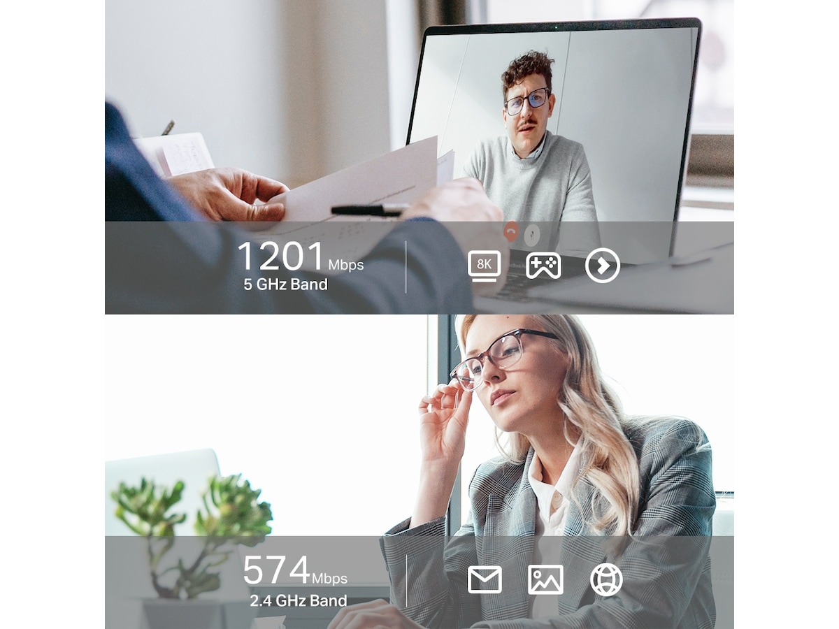 - Hurtig WiFi 6 - Bryd gigabit-barrieren med hastigheder op til 1201 Mbps (5 GHz) + 574 Mbps (2.4 GHz).