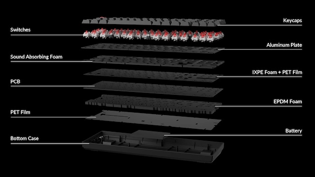 Forbedr din skrivning med K8 version 2, der har avanceret IXPE akustisk skum for øget komfort, kombineret med modstandsdygtigt EPDM skum for fremragende nøgleskiftesupport, respons og holdbarhed. Aluminiumspladen giver responsivt feedback og en rolig skrivelyd, mens den ekstra vægt vil øge stabiliteten.