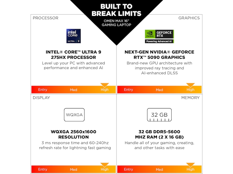Gaming laptoppen OMEN 16 MAX har suveræn ydeevne både hjemme og på farten. Med næste generations NVIDIA® GPU'er og Intel® Core™ Ultra-prosessorer, en ny Unleashed Mode til manuel overclocking og en termisk arkitektur, der er bygget til at reducere både belastning og langvarig slid, kan dedikerede gamere spille op til deres bedste i mange år fremover.