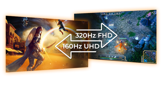 Dual Refresh Rate tilpasser sig den måde, du bruger skærmen på - skift til en højere opdateringshastighed for jævn gaming, eller skru ned for skarpe, klare billeder, når du arbejder, ser videoer eller laver design. Skift ubesværet mellem ydeevne og effektivitet til produktivitet eller underholdning.