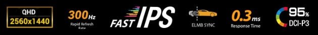 - ASUS Fast IPS teknologi muliggør en 0.3ms (GTG) svartid(min.) for skarpe gaming-visuals med høje billedhastigheder