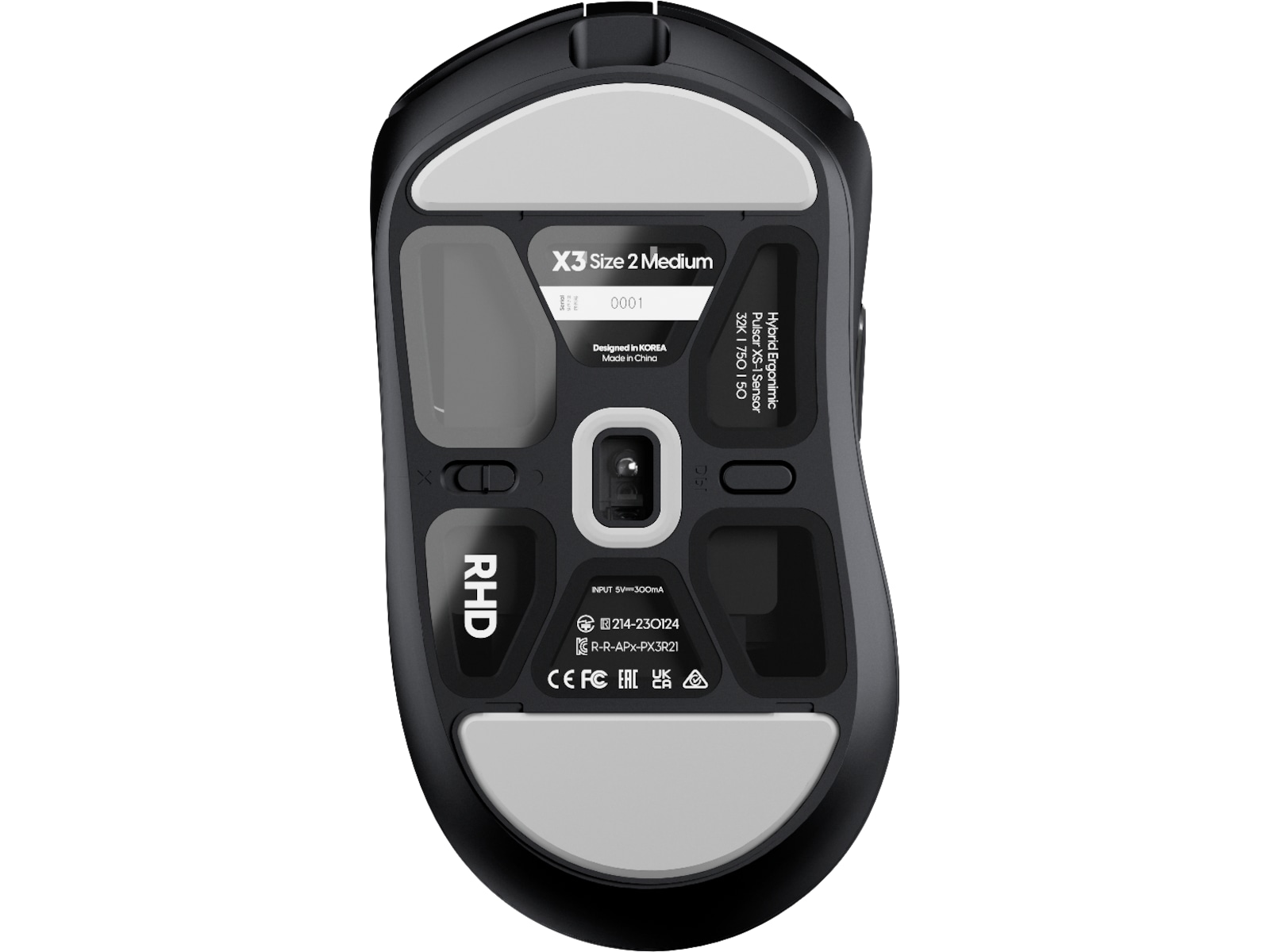 Den nyudviklede X3-mus har et hybrid ergonomisk design, der kombinerer det bedste af håndfladegreb og klo-greb i en håndflade-klo form (RelaxClaw). Ved at sammensmelte fordelene ved symmetriske og asymmetriske designs opnår den en perfekt balance mellem komfort og kontrol. Den symmetriske knaphøjde sikrer en ensartet oplevelse for alle brugere, mens den asymmetriske form konturer sig naturligt til hånden, hvilket giver ekstraordinær komfort selv under længere spil-sessioner.