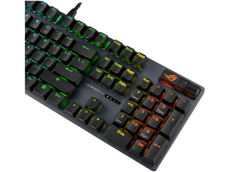 ROG PBT doubleshot keycaps giver en unik og premium følelse samt tilbyder langvarig holdbarhed. Nøgleudformningen er blevet optimeret med mellemhøje tastaturknapper (svarende til Cherry-profiltastaturknapper) og en kortere stamme for at reducere tastaturvobling og give en mere komfortabel brugeroplevelse.