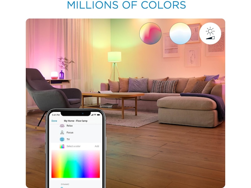 Smart LED-belysning, farvet og hvidt lys, Wi-Fi