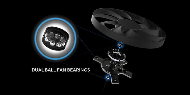 Dobbelte kuglelejer har en lang levetid på op til 80.000 timer, hvilket er dobbelt så lang som levetiden for glidelejer og overgår fluiddynamiske lejer. Det er med til at sikre langvarig, pålidelig og støjsvag køling.