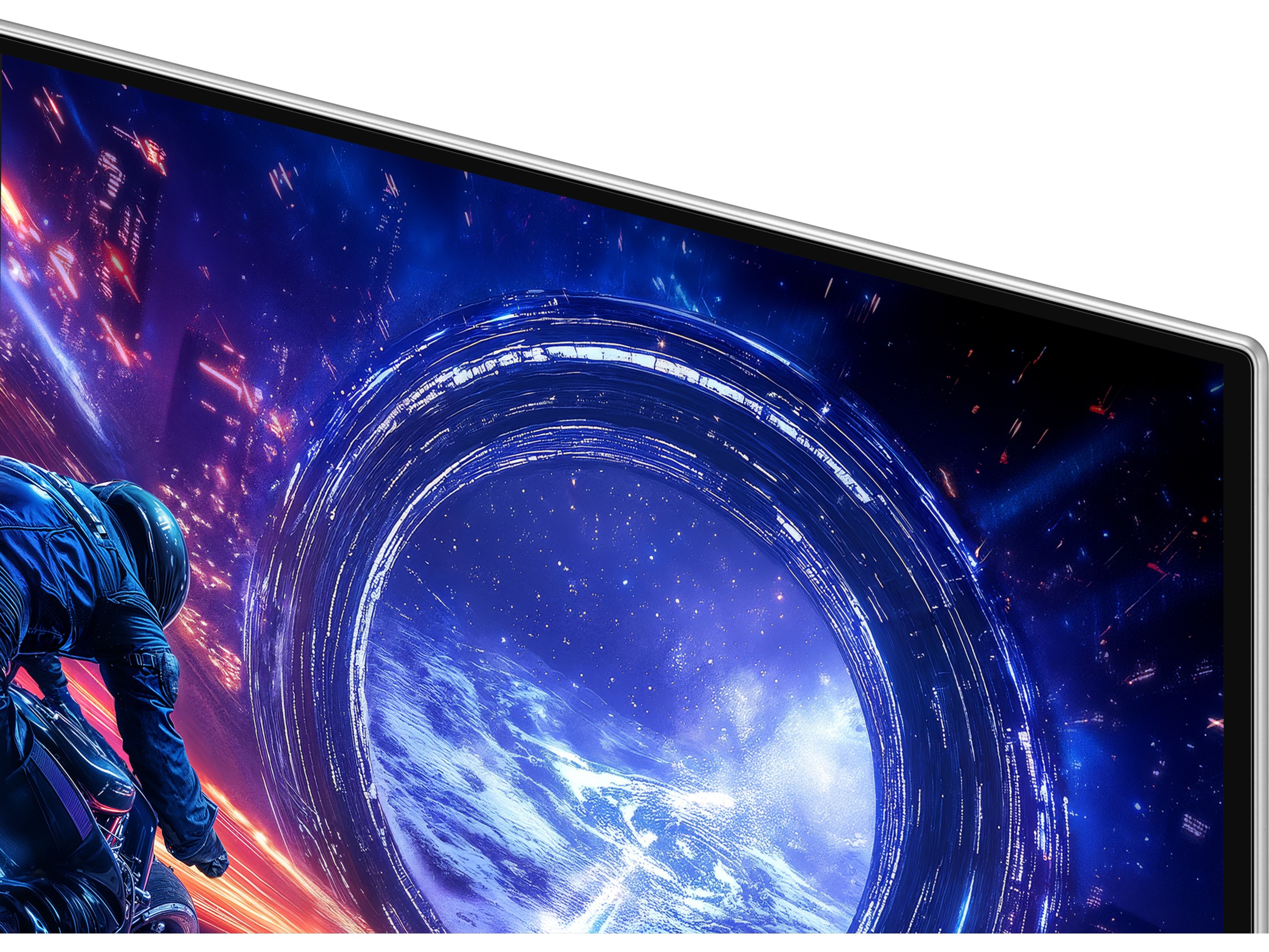 Oplev fantastisk realisme i dine spil. Samsung QD-OLED tilbyder forbedret lysstyrke og et bredt farvespektrum, hvilket gør scenerne i QHD-opløsning skarpe og levende.