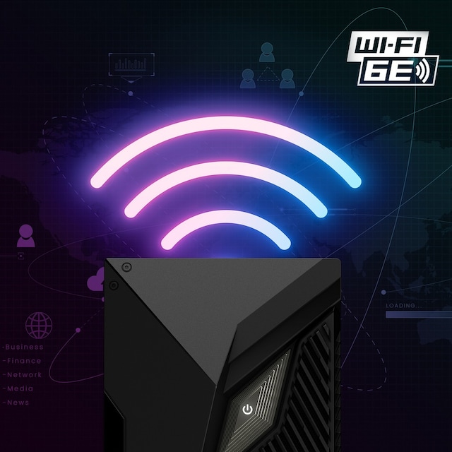 MSI Desktoppen har den nyeste Wi-Fi 6 802.11ax standard og hastighed op til 2,4 Gbps, der er 3 gange hurtigere end Ethernet LAN. Latenstiden er også 75 % lavere end den foregående generation.