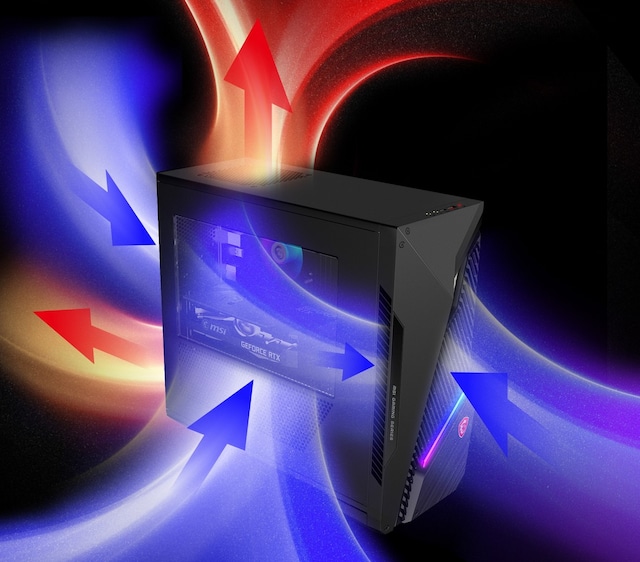 MAG Infinite S3 gaming desktop er bygget til optimeret køling. Den har masser af plads til luftstrøm og maksimerer termisk køling på luftindtagets store overflade. Ventilationen gør det nemt at opnå ekstrem køleydelse.