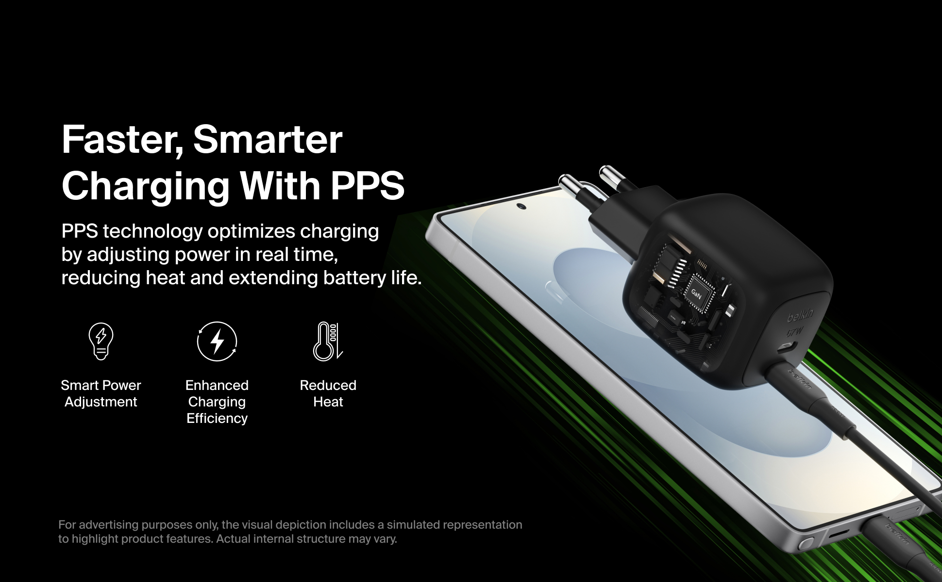 Enheden muliggør samtidig opladning af to enheder uden reduceret ydeevne. Avancerede PD 3.1 og PPS-protokoller sikrer optimal strømfordeling til hver tilsluttet enhed.
