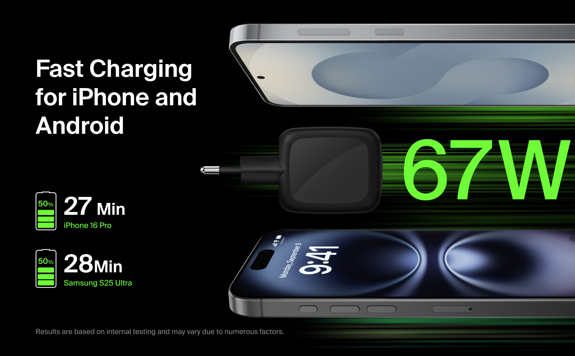 iPhone 16 Pro: 0–50 % på 27 minutter