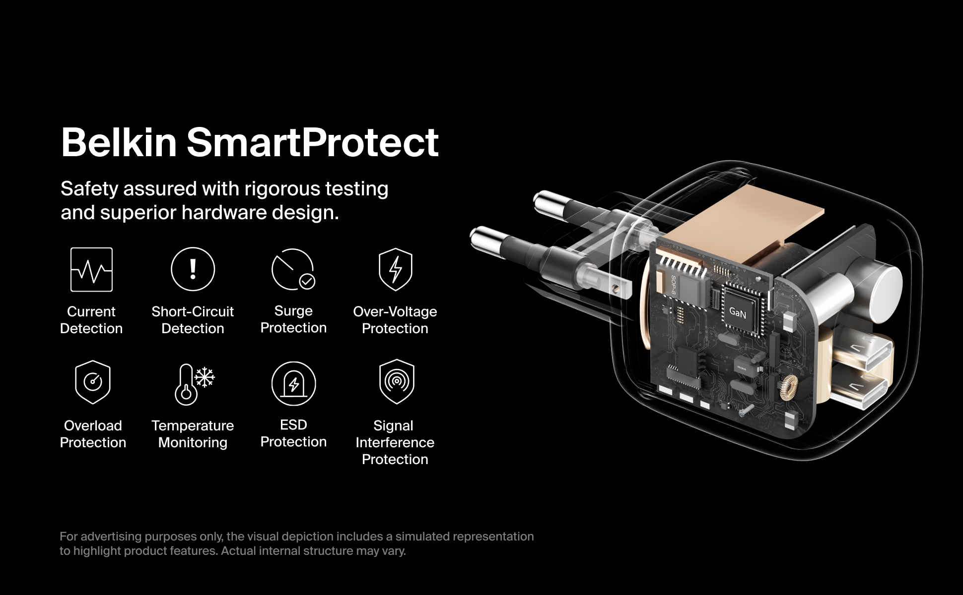 Integreret kortslutnings- og temperaturbeskyttelse