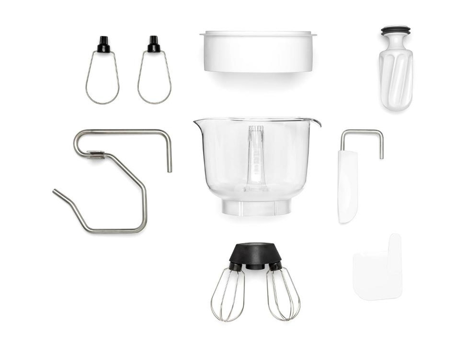 Sammen med Ankarsrum Assistent følger der meget tilbehør med, som dejrulle, eltekrog, dejskraber og dejkniv. Derudover følger der en piskerskål på 3,5 liter, en dobbeltpisker, en mørdejspisker og et hævelåg. Dette giver dig mulighed for at lave alt fra luftig flødeskum til grove brøddeje. Du justerer hastigheden, som du selv ønsker. Selv på maksimal hastighed står køkkenmaskinen urokkeligt på bordet. Maskinen har også en indbygget timer.