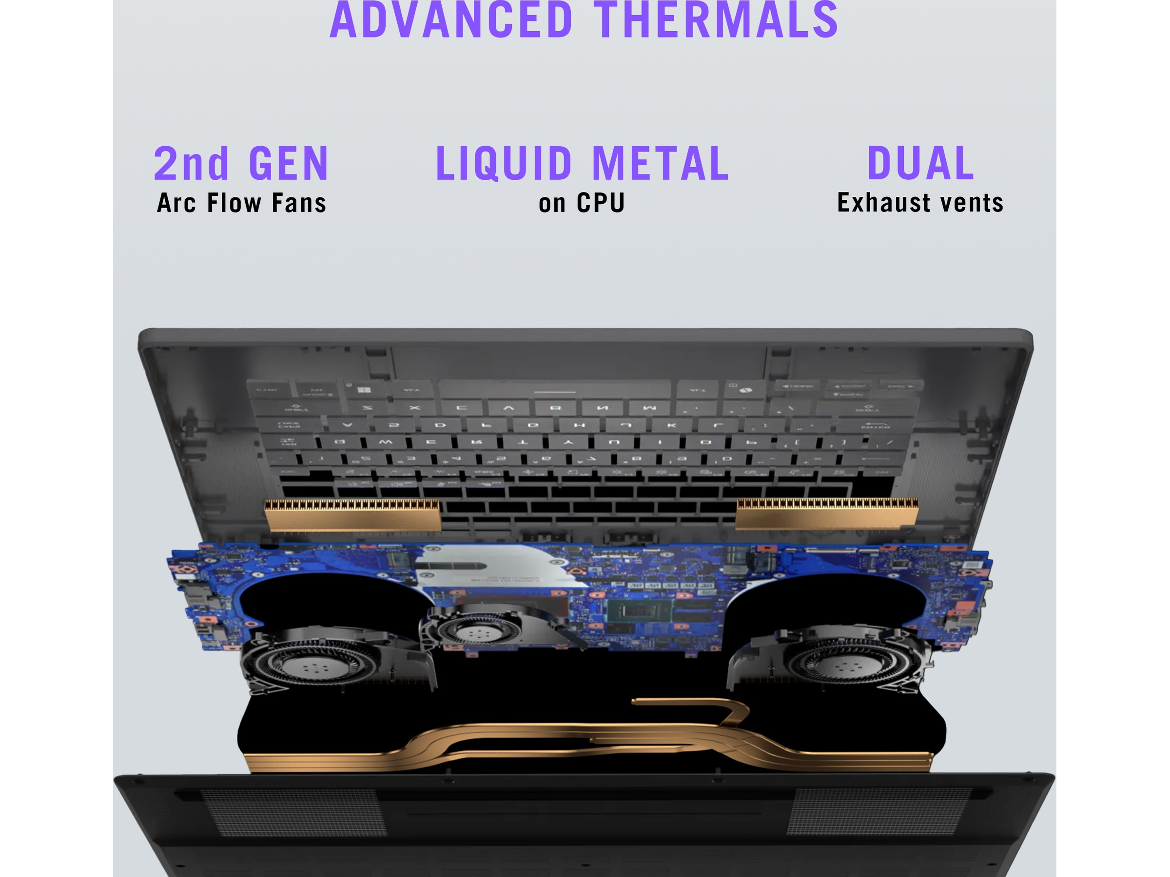 | Egenskaber | 3 indbyggede køleventilatorer, ASUS Aura Sync technology, BIOS-beskyttelse, 0dB Ambient Cooling, 2. gen. Arc Flow Fans, Flydende metalfedt, ROG Intelligent Cooling, Thermal Grizzly Conductonaut, ROG Nebula Display, Asus Slash Lighting, Integrerede støvfiltre, Dampkammerkølesystem |