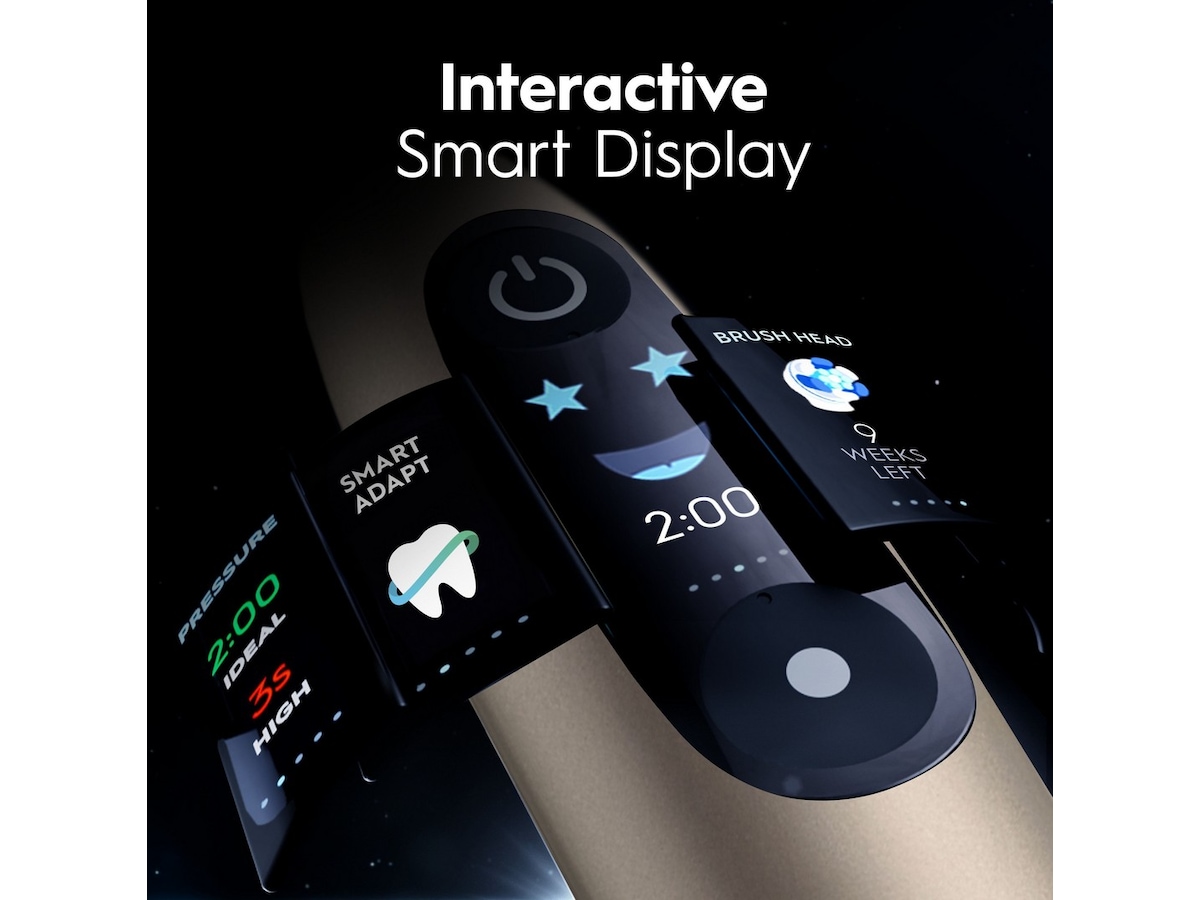 INTERAKTIVT BØRSTEDISPLAY som belønner PERFEKT RENGØRING ved at registrere tid og tryk, og som advarer, når du bør skifte børstehoved