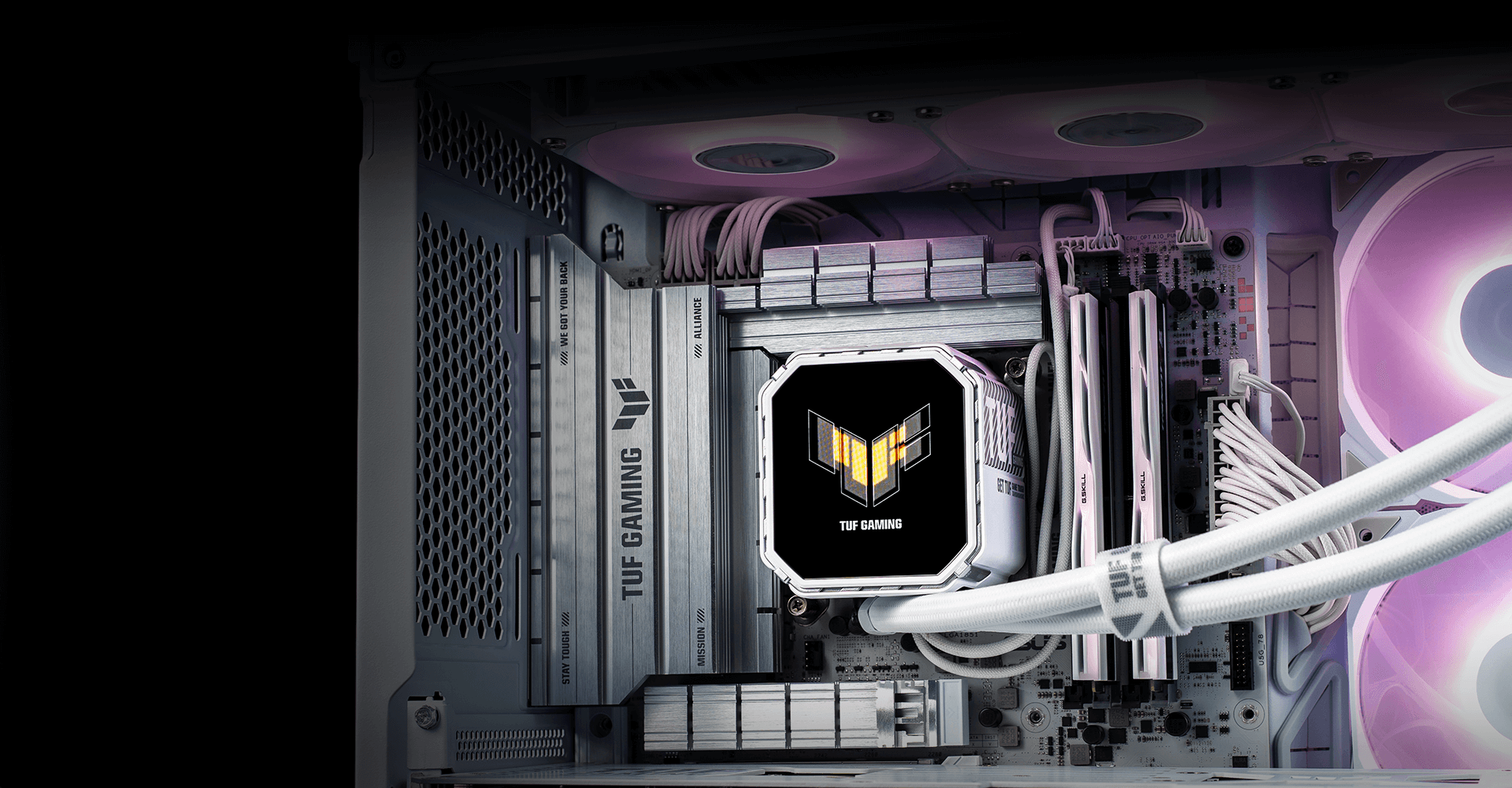 Designet matcher TUF Gaming bundkort og gør det til et visuelt iøjnefaldende midtpunkt i dit setup.