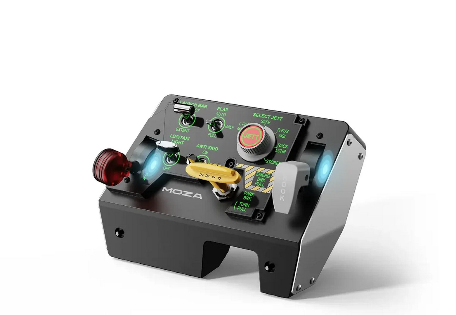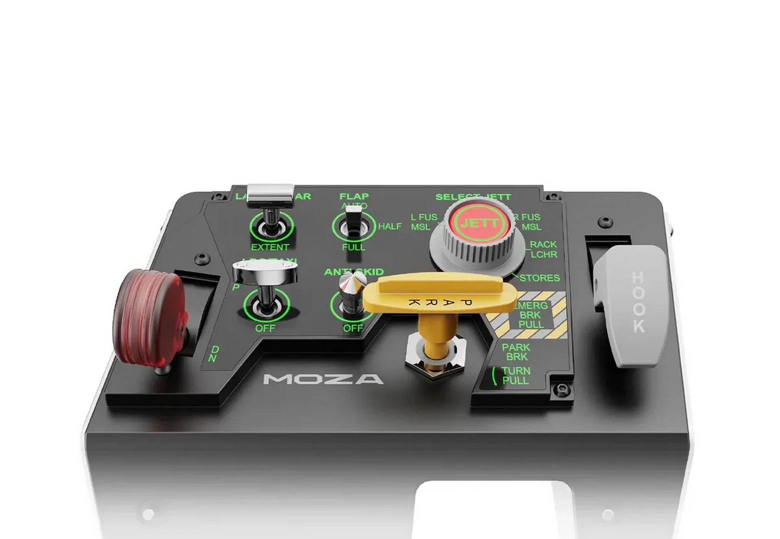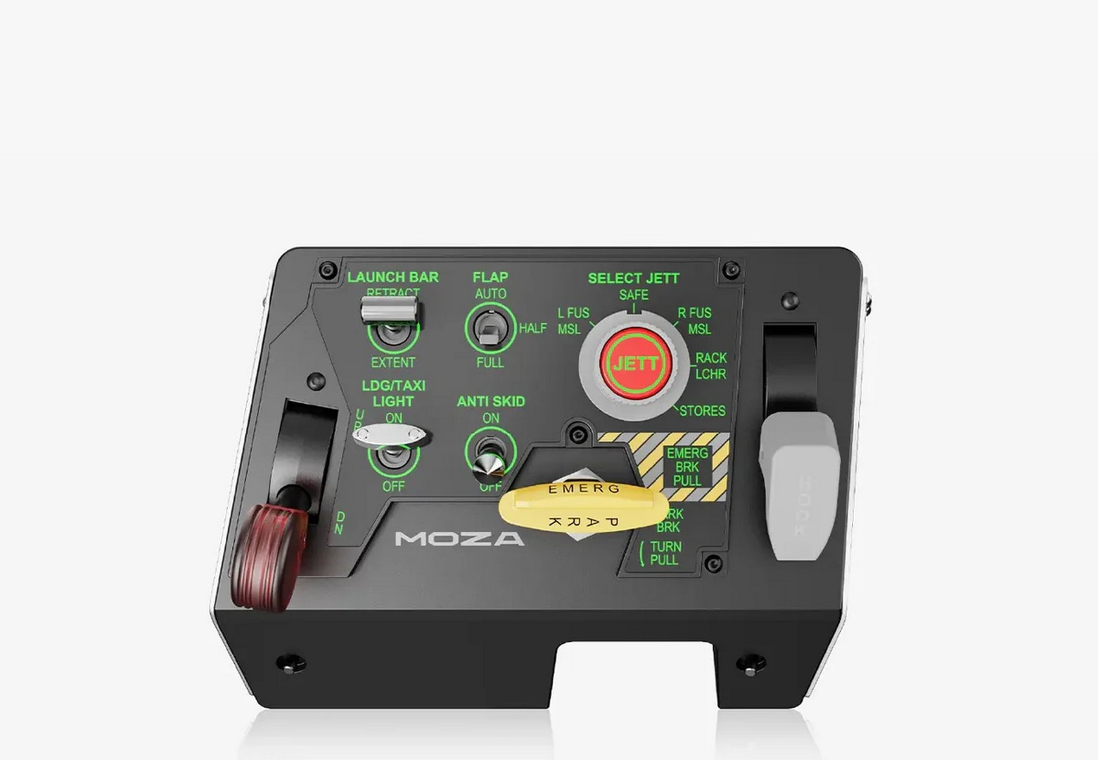 Integreres problemfrit med MOZA MTP Throttle Panel og giver en komplet jagerflykontrolløsning fra takeoff til landing.