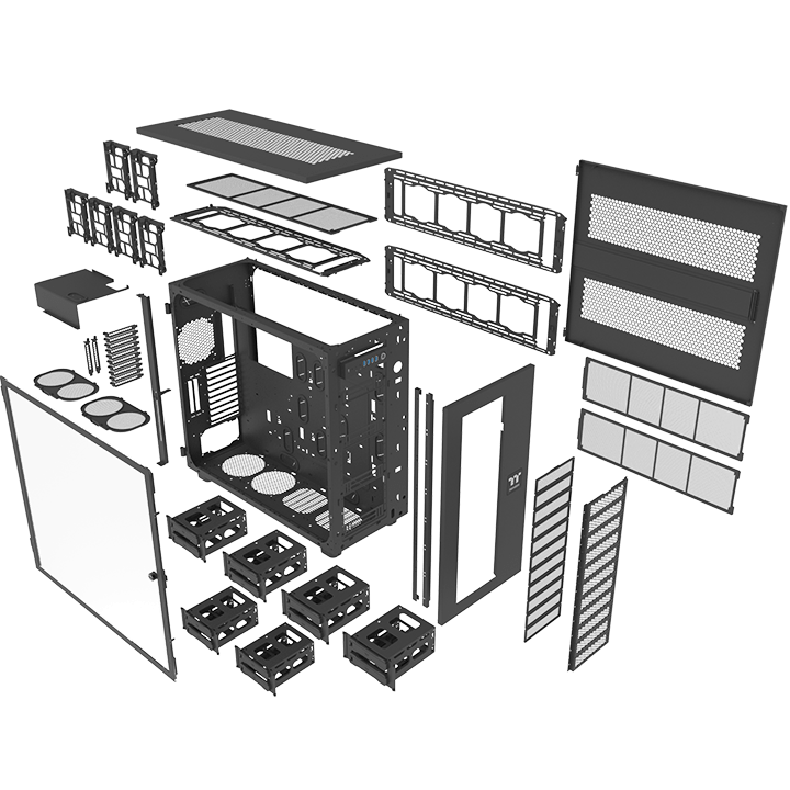 AX700 TG Super Tower Chassis understøtter CPU-kølere op til 190mm i højden, grafikkort op til 630mm i længden (uden HDD-rack installeret) og strømforsyninger op til 220mm i længden. Kabinettet understøtter op til atten 120mm/140mm blæsere, en 560mm DIY eller 420mm AIO radiator på top-panelet og op til atten 3,5"/2,5" lagerdrev i de medfølgende HDD-bure og bakker. Yderligere udvidelse er mulig gennem integration med AX100 kabinettet for forbedret hardwareimplementering.