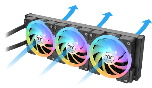 MAGFloe 360 Ultra ARGB Sync har en førsteklasses 3,95" firkantet LCD-skærm, der leverer klare, levende billeder og muliggør AI Forge-funktionalitet via TT RGB PLUS 3.0-softwaren, med yderligere tilpasning tilgængelig gennem TT PlayLink-mobilapplikationen. Denne avancerede AIO-væskekøleløsning inkorporerer SWAFAN EX-blæsere med MAGForce 2.0 Quick Connection Design og Swappable Fan Blade Design, hvilket forbedrer det æstetiske udtryk ved at minimere kabelhåndteringsproblemer og optimere dual-ring RGB-lyspræsentation på tværs af forskellige luftstrømskonfigurationer.